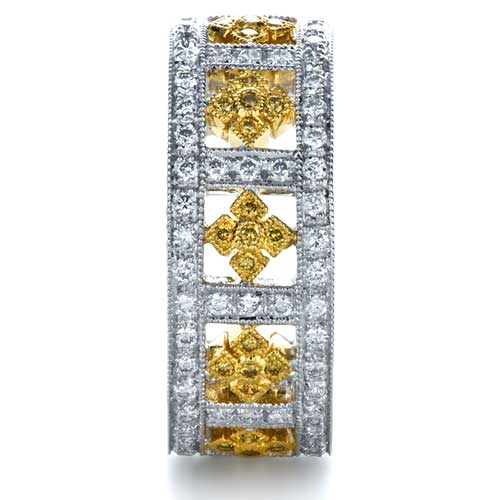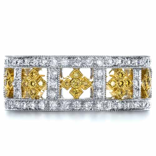 Wedding band Yellow gold 7 Alliance ruban confort givré – Or blanc Frosted Comfort brossé demi-tour 9 diamants – Deux ors All diamond wedding bands come in halfway or all round versions, ... Content Retrieval